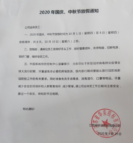 2020年國(guó)慶、中秋節(jié)放假通知